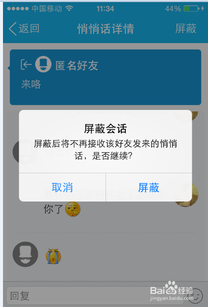 看官别生气哈,上面的方法是目前亲测最有效的,试着多拖一点时间,找你说悄悄话的一般很有倾诉欲望,说的越多破绽越多,除非是恶搞的说了一句就没下文了。查看悄悄话消息还可以在消息记录里查看。
