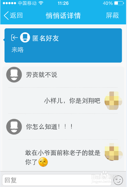ok,施展身手的时候到了,在对话框敲入“你是谁!!!”等待对方回应“劳资就不说!!!”结合自身朋友圈子说话习惯,大胆戳穿他“小样,你是刘翔吧”。当当当当~~赞不赞。