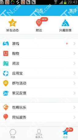当大家升级手机QQ5.3体验版本以后,直接点击动态可以看到附近有新功能的标志,点击进入;