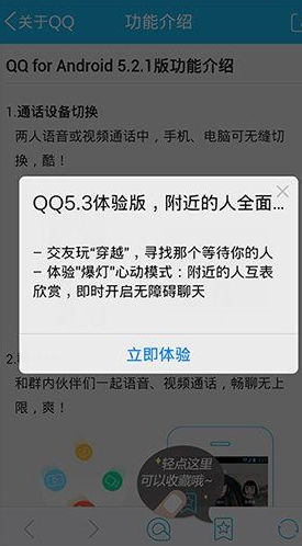 安卓版手机QQ5.3体验版继续在陌生人交友方面深度耕耘,