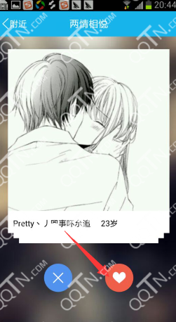 3)在搜寻到的附近的人中,如果自己不感兴趣,可以点击【×】换一个,如果遇到自己喜欢的,可以点击【爱心】对TA进行爆灯哦。
