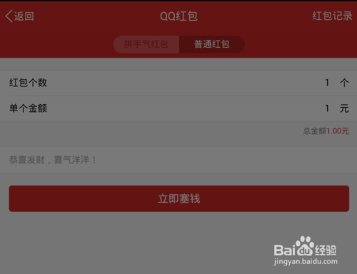 点击发消息后可以打开如下界面,在下图中选择”发红包“