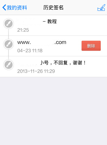 4、然后在目标签名上向左滑动触屏,美好的事情就发生了。。神奇的删除按钮出现了有木有!