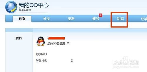 点击我的qq中心以后进入到我的qq中心页面,我的qq中心页面上面点击动态,如图所示: