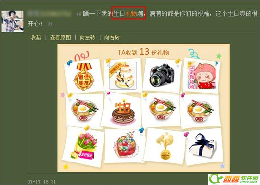1.礼物墙出现时间是生日当天,空间主人登录空间,系统消息会随机通过礼品卡的形式提示(关闭窗口后无法重新显示,但可通过礼物中“收到的礼物”中查看),展示近期好友送礼物的信息;