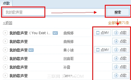 2.点击之后出现点歌界面,输入你喜欢的歌曲名称,例如:我的歌声里,然后点击点歌选项即可