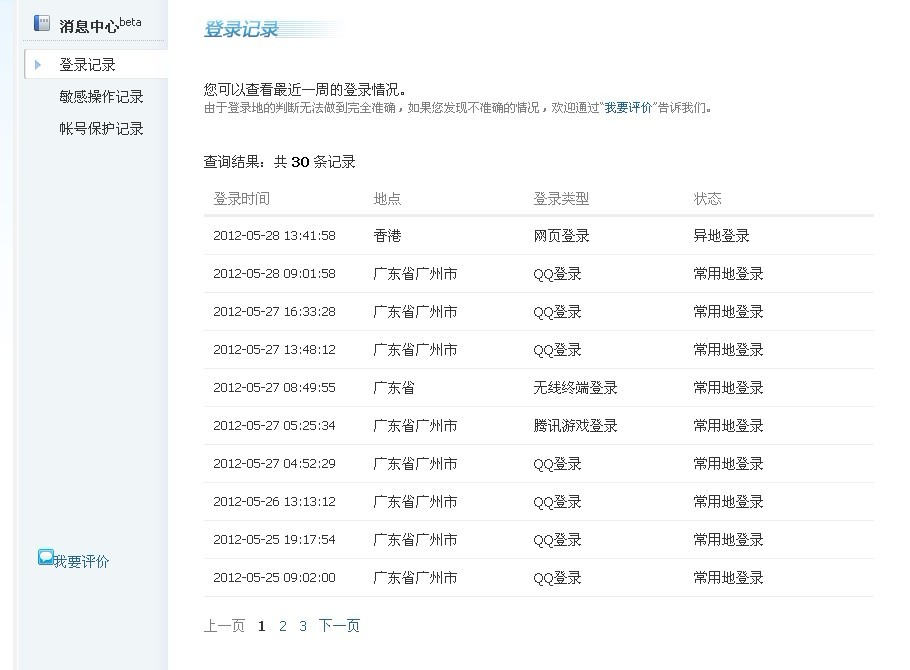 QQ登录记录怎么查询,号码被盗了,在异地登陆,不要惊慌,你注意过QQ登录时弹的Tips吗?上次登录的“你”的确是你吗?别怕,来qq安全中心查看更长时间范围的登录情况吧,帐号安全一目了然。QQ登录记录,你查过了吗?应该及时杀毒,防止账号和密码再次被盗。