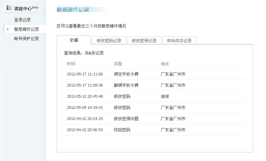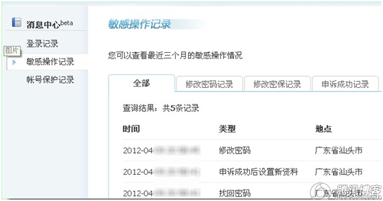 从QQ安全中心首页点击“查看登录记录”,你会惊喜地发现,敏感操作记录也已经可以查看啦!修改密码记录、修改密保记录、申诉成功记录,一切尽在掌控中。原来真的有一种记录,叫做安心。