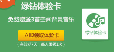 想免费玩转QQ空间背景音乐吗?那就赶快来免费领取绿钻体验卡,还可享受5Q币的现金抵扣券正式开绿钻的资格(相当于5折),还木有领过的小伙伴儿可以去试试哟!