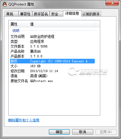 不过在西西上次截图中可以看到QQProtect.exe,版本号是3.7.0.5056,这是最新QQ5.0中的QQProtect.exe.我们从桌面快捷方式
