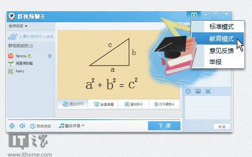 打开QQ群,选择群视频即可切换标准模式或者教育模式,这次,远程多人教学,更精彩了