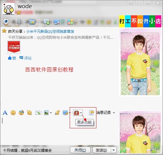 既然在默认表情中找不到搜索按钮了,我们只能看看聊天窗口其他的地方了,小编迅速锁定了"更多功能"按钮,就是那个小红色图标!