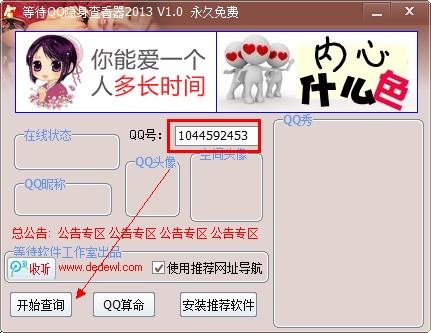输入要查询的qq账号,点击开始查询按钮即可