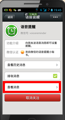 语音提醒功能相当于微信公众帐号,比如现阶段用户通过语音输入“1分钟之后提醒我写文章”,微信会回复语音说,“没问题,晚上8点20分准时提醒你。”1分钟之后用户可以收到这个推送通知,也可以查看1分钟前设定时说了什么内容,微信同时可以将这段内容转换成文字。