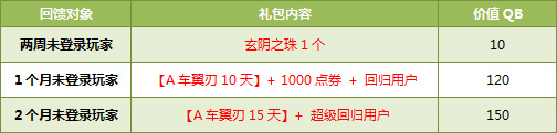 注:仅10级以上玩家可获得回归好礼,且每个玩家只能获得其中一个。