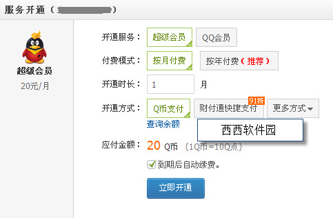 4)选择对应支付方式,支付后完成开通(20元/月)。