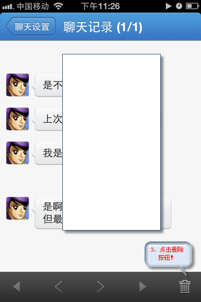4、点击上图中的删除按钮,就可以删除iPhone QQ聊天记录了。