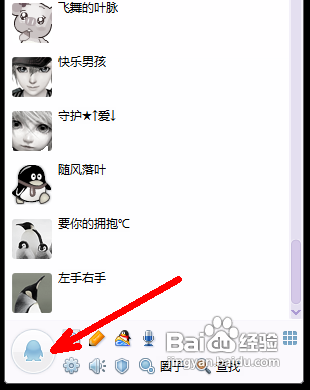 1、首先打开qq软件,在软件的左下角有一个蓝色的企鹅,用鼠标点击这里。
