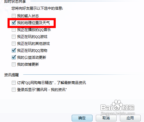 4、点击之后在界面右边会有一系列设置选项,将我的地理位置及天气前面的钩去掉。