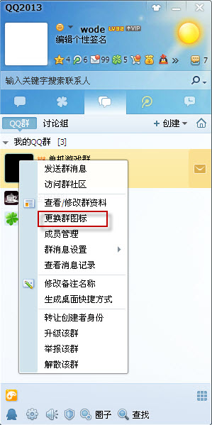 一、登陆qq,右键点击群图标。选择“更换群图”