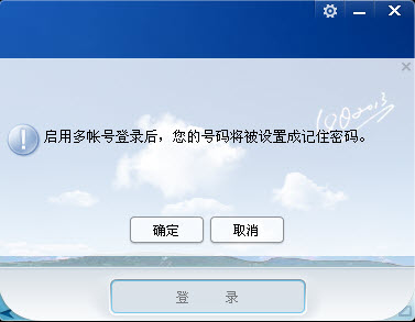 2.弹出对话框:“启用多账号登陆后,您的qq账号将设置成记住密码”点击确定!