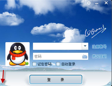 1.打开qq登陆界面,打击左下角图标。如图箭头所示: