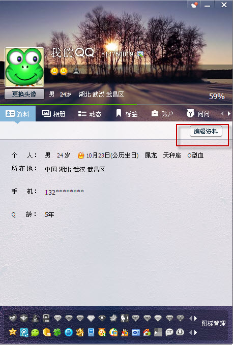 2.在弹出的页面中点击编辑资料,相信大家就是没有看到这个编辑资料哦!