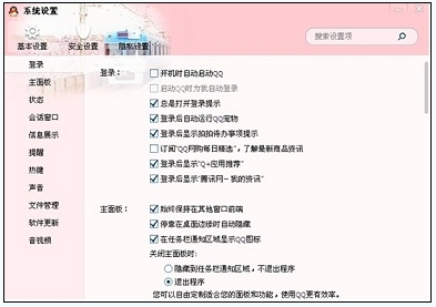 开机需要自动登录QQ吗?会话窗口需要合并吗?接收的文件都自动保存到哪里去?如果你觉得这些功能设置起来有些麻烦的话,那就要来体验一下QQ2013全新的系统设置了。QQ2013系统设置进行了重组,通过对原有的设置项进行重新归类整理,分为基础设置、安全设置、隐私设置三大类,功能进一步细分化,标签与功能直达对接。如果点击标签,会直达某一功能,当然也可以通过鼠标,将功能一查到底。简单操作,方便实用。