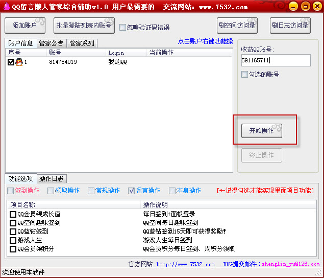 1.运行“亿家QQ留言懒人管家”登陆自己的qq号