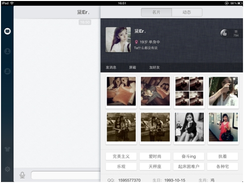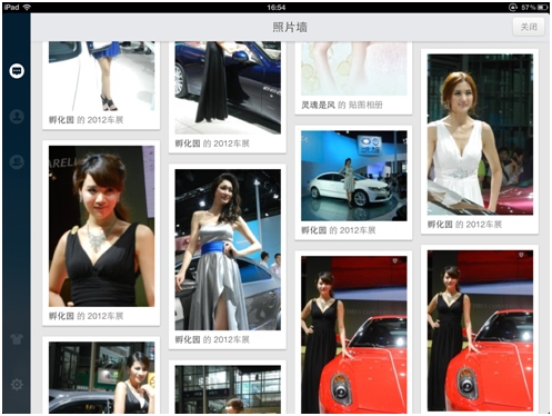 为了满足好友间互相关爱的需求,iPadQQ3.0的好友动态突出了图片、视频的内容,更加丰富。而独立的好友照片墙区域,可以“抢鲜”看见所有好友最新上传的照片。如果你的朋友去看车展拍美女了,你第一时间就能看到他上传的照片!