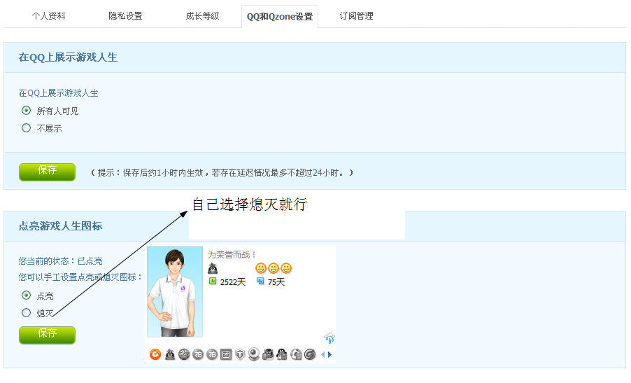 先点开“游戏人生”网-右上角:“个人设置”-“QQ与Qzone设置”在框内取消-就行了。你们可以设置,那个图标真的看着很烦。