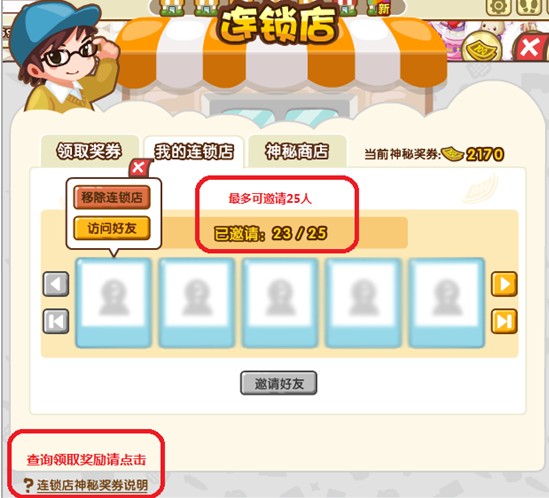 4、最多可邀请25名好友,达到25人后需要移除连锁店才可继续邀请;