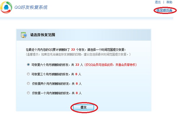 如果您需要恢复被删除的QQ好友,请直接点击“提交”