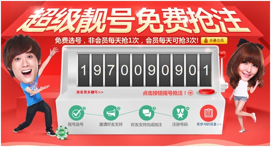 抢号限制:非会员1次/天,QQ会员3次/天,放弃抢号也算当日抢号次数名额,一个人不能同时抢注多个号。
