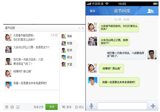 但是,最近网页版的群聊上线后,小敏发现,无论你在电脑上,还是用手机,都可以与同事朋友实时聊天。所以,现在尽管她没有智能手机,但一样可以从电脑上和同事们进行对话聊天,也正是通过电脑她知道同事们正在讨论什么和关注什么,从而不会感觉到自己在圈子边缘上。