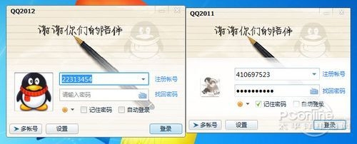 QQ2012的登录界面也没有什么变化,与旧版相比只是界面变大了一些而已,当然同样支持多帐号登陆功能。
