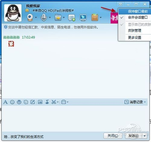 还有就是聊天窗口支持置顶功能,更加方便用户一边聊Q一边做其他事儿了。