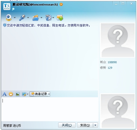 2、若双方只是互相收听,而并非QQ好友,点击“即时消息”按钮会出现如下提示: