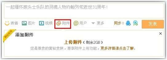 据了解,目前除腾讯微博可以在广播带附件外,QQ空间里的日志和说说也可以添加附件,不过该功能暂对黄钻用户开放。