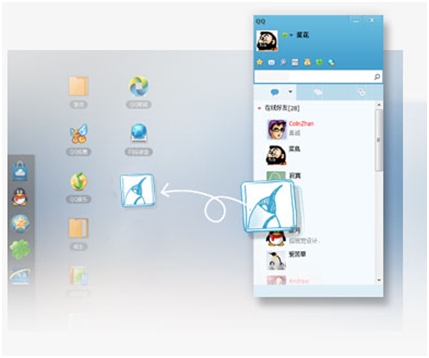 2、 新增桌面联系人功能,可以将QQ好友拖动到桌面,在常用联系人里面。