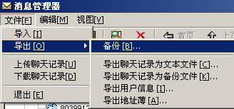 打开“文件”菜单,选择“导出”下面的“备份”然后选择备份的路径和备份的文件名就可以了。如果想单独备份某个人的聊天记录,那么可以在选中该好友之后,点击“导出”菜单下的“导出聊天记录为文本文件”,这样你就能以记事本来查阅聊天的具体内容。在你要恢复的时候你只需要再次启动消息管理器,打开文件菜单,选择“导入”命令,把备份的文件选中即可恢复。