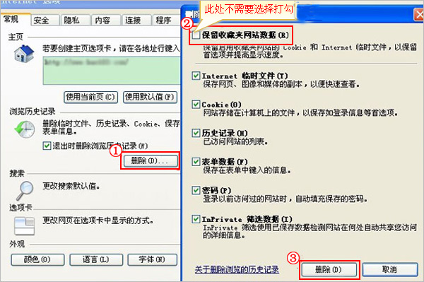 在“常规”中点击“删除”=》将“保留收藏夹网站数据”前的勾取消=》“删除”,即可成功清除缓存。如图,