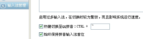 Ctrl+~可以直接切出或切走QQ拼音,此快捷键可以在属性设置-》输入法管理中进行设置。