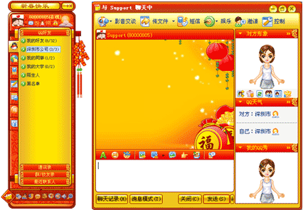 安装完成后,QQ会自动将皮肤换成该主题包里的皮肤,聊天窗口加载场景(如果该主题包包含场景),同时,在用户的自定义表情栏里增加一个表情类别“主题包”,并将主题包的表情添加到该类别之下。