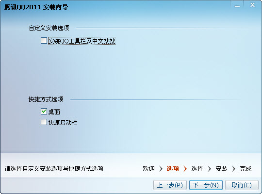 2、取消“安装QQ工具栏及中文搜搜”,取消“快速启动栏”。