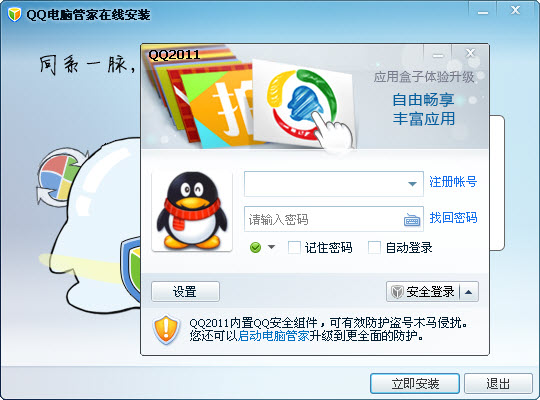 今天真有点运背,QQ2011用着就出错了,用不了,卸载了,再下载了一个最新的QQ2011 beta2版,安装。在前几步安装很顺畅, 也蛮快,感觉 这个版本比之前的Beta1,安装快多了。