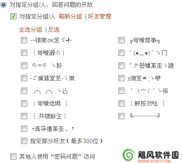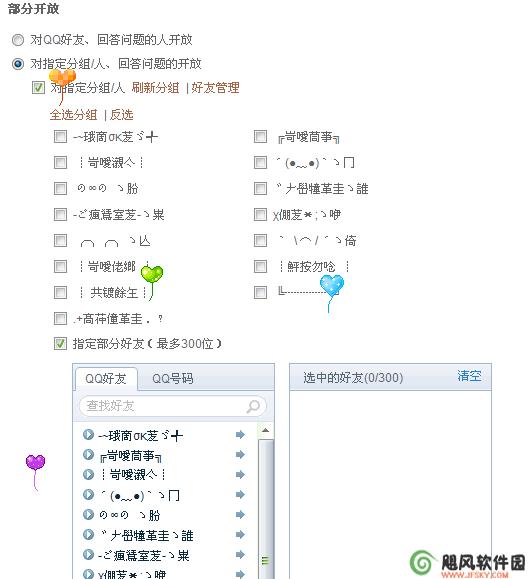 还有一个是指定部分好友(最多300位),添加这个选项是比较人性化的,因为看你会出现其中一个分组里的人你想让他查看,有的人你又不想让他查看,所以你就可以指定单个的人了。