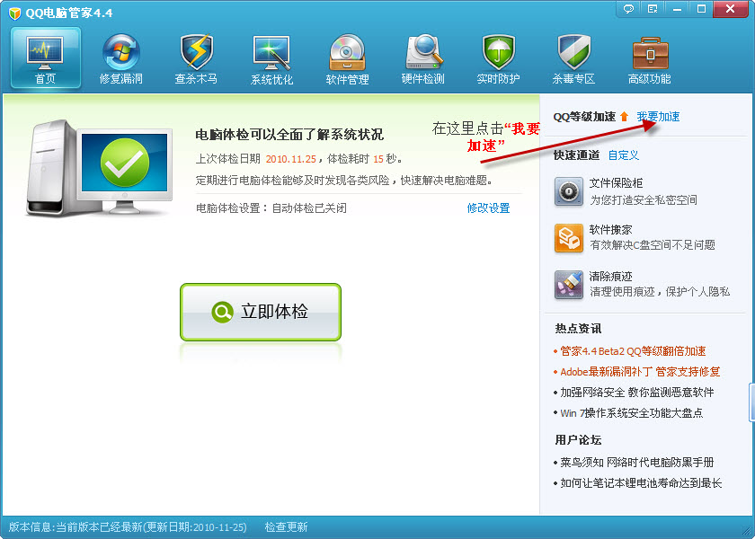 今天腾讯官方推出了一项活动 QQ只要用户每天使用QQ电脑管家半小时以上,就可以给QQ升级多加一天。平心页论,我最开始是使用360安全卫士的,自打3Q大全之后,就没有用360,改用金山卫士,哈,今天活动一出来,我就又装上了QQ电脑管家,不是哥花心哦,QQ升级一天的魅力不可抵挡啊。