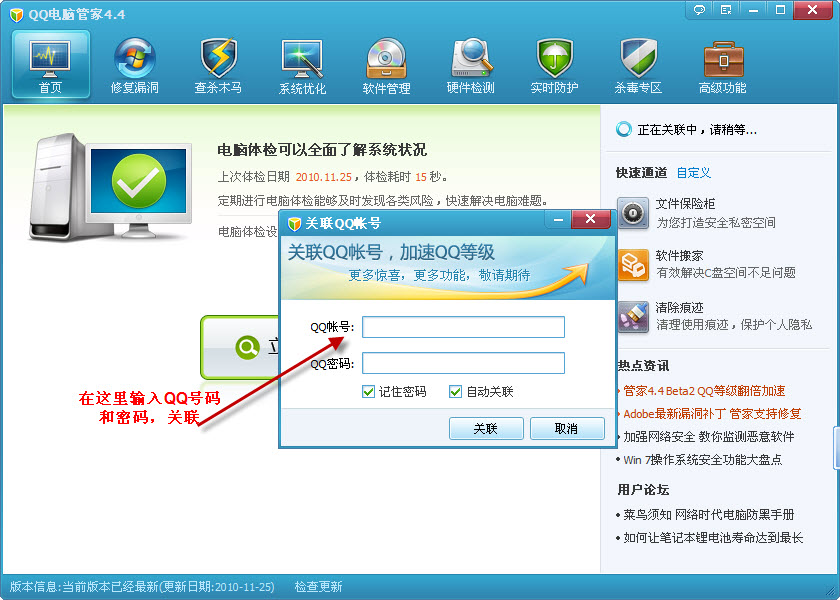 安装好QQ电脑管家后怎么对QQ进行关联?