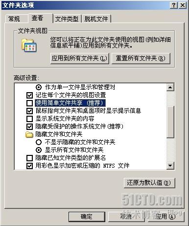 首先,打开C盘,点击 “工具”选择“文件夹选项”,选择“查看”,将“使用简单文件共享(推荐)”前面的小勾去掉,点击“应用”“确定”。如图。